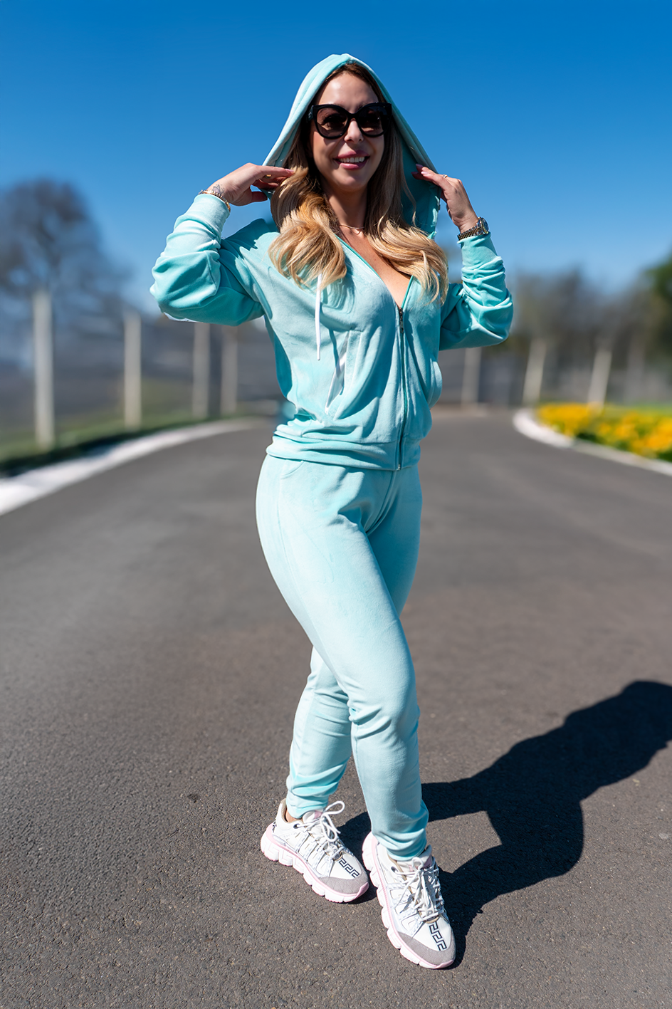 Treningurile sunt compuse din doua piese ( bluza si pantalon). Bluza accesorizatacu gluga, buzunare si fermoar cu inchidere de jos in sus. Pantalonul este accesorizat cu buzunare laterale,