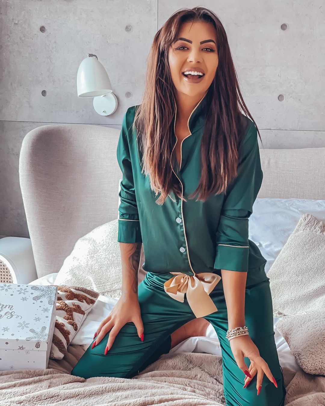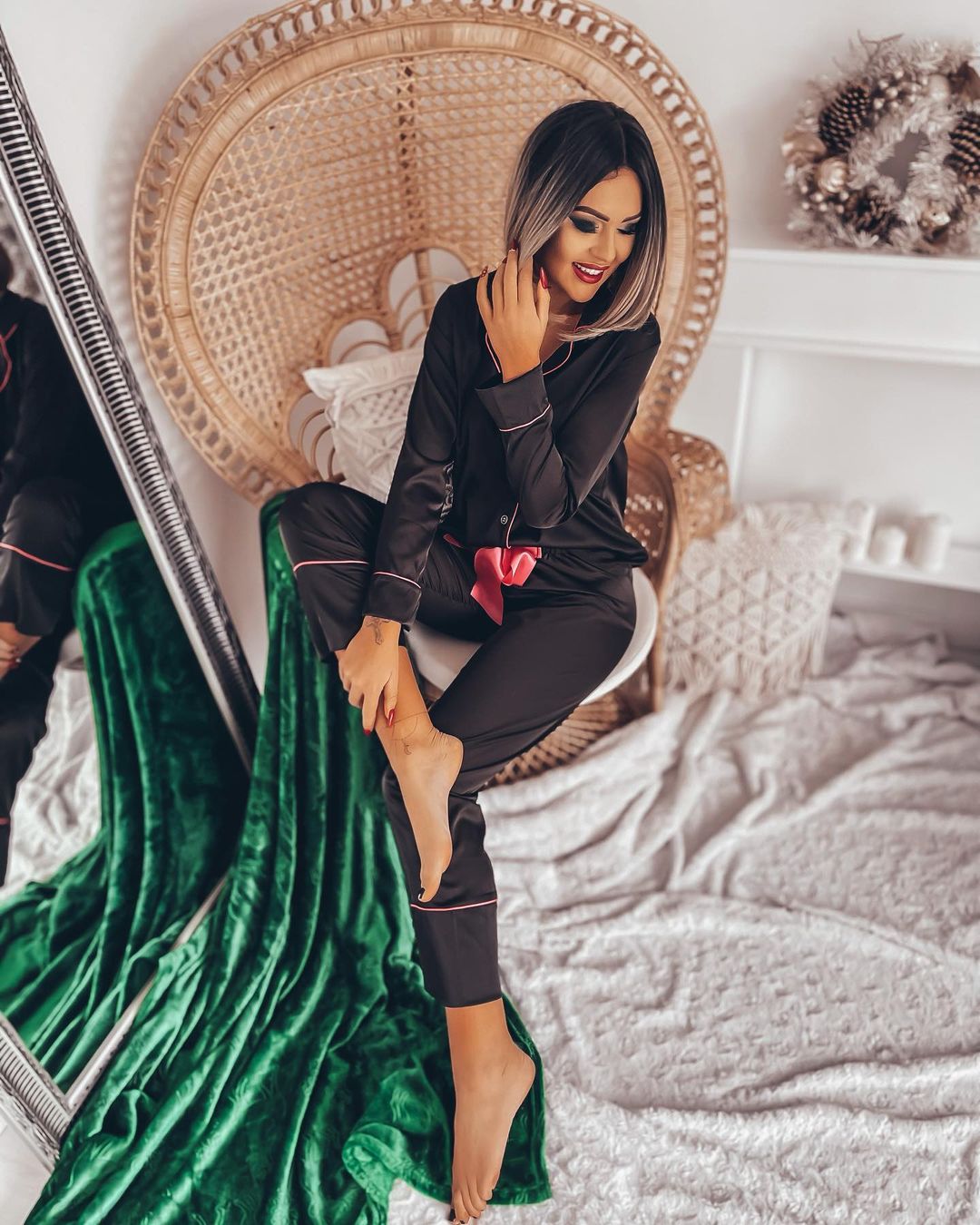 Pijamaua Maddy este confectionata din saten usor elastic de cea mai buna calitate, este comoda, accesorizata cu nasturi si funda din saten de alta culoare. Ideala pentru noptile racoroase. Pijamaua face parte din colectia premium de la Buticul Evei.