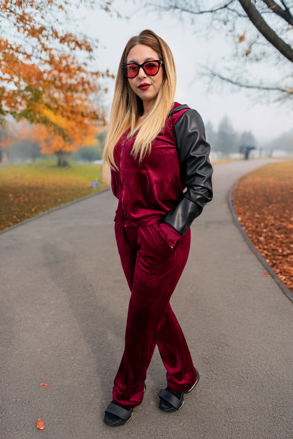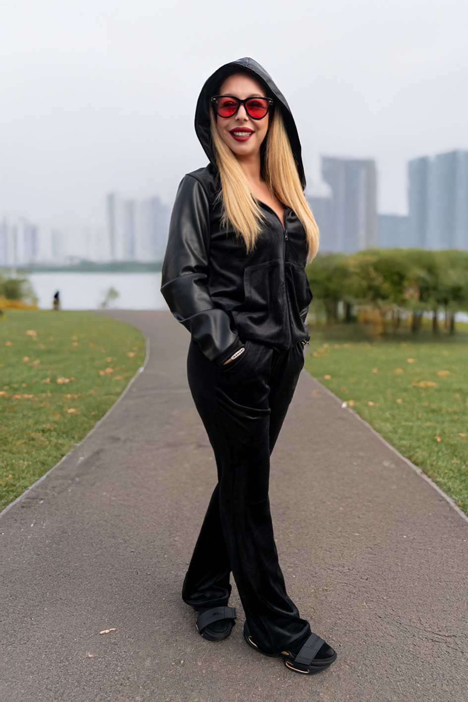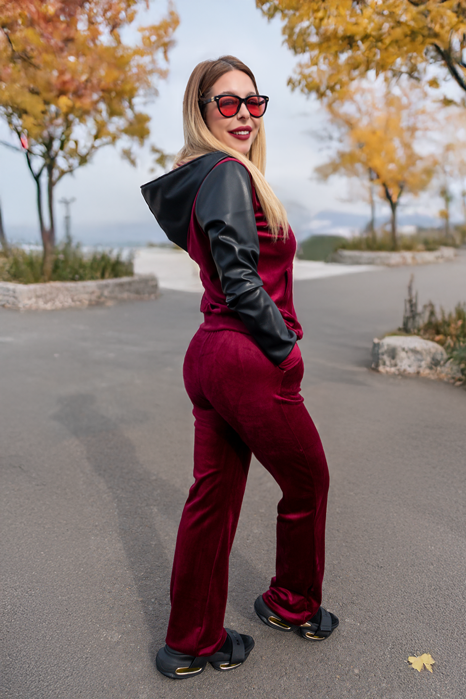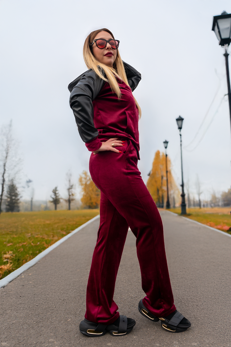 • Compus din doua piese : pantalon evazat si bluză hanorac!
