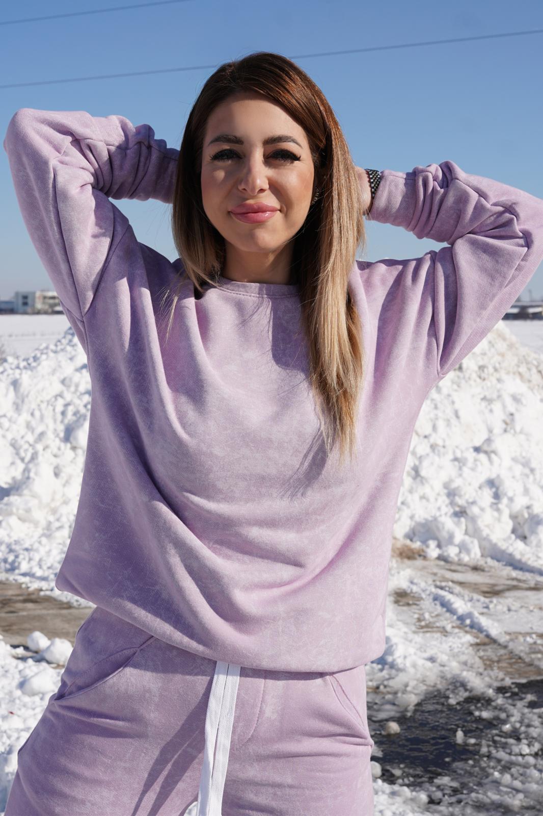Bluza cu croi lejer și mâneci lungi completează perfect pantalonii cu talie elastică și șnur reglabil, asigurând un fit confortabil și practic. Designul cu efect prespălat adaugă un plus de personalitate și un aer modern ținutei.